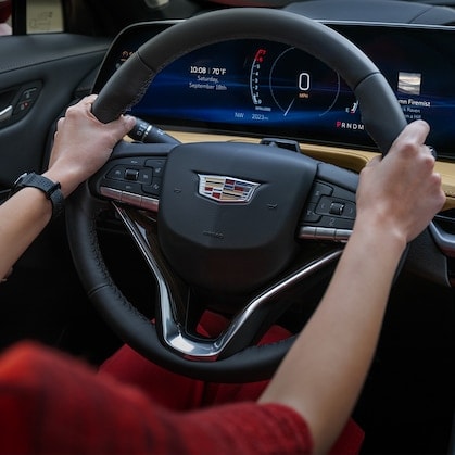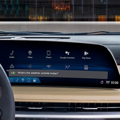 See your drive in a whole wide way. The 33" diagonal advanced LED display, inspired by the Cadillac LYRIQ, is a single continuous piece which artfully curves to span the driver's viewing area.This incredible touchscreen can express more than 1 billion colors with a stunning 9K resolution