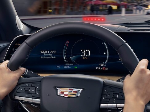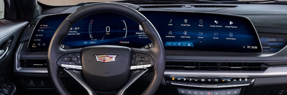 Prepare for decisive action. A 33" diagonal LED display serves as command center for a suite of safety and driver assistance features, thoughtfully redesigned instrument panel and rotary dial-controlled infotainment*Â system. The single XT4 screen-inspired by the Cadillac LYRIQ-artfully curves toward the driver, offering impressive views of the customizable interface.